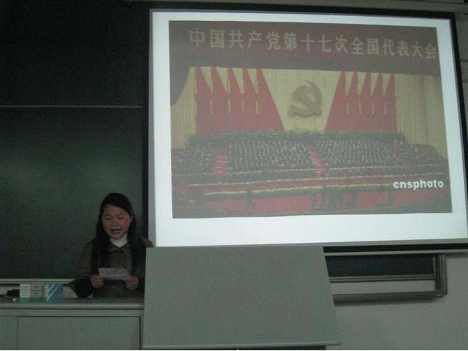 4月26日,电子系09信息331、09机电334两班级团员在教学楼2507教室联合举行联合团课。