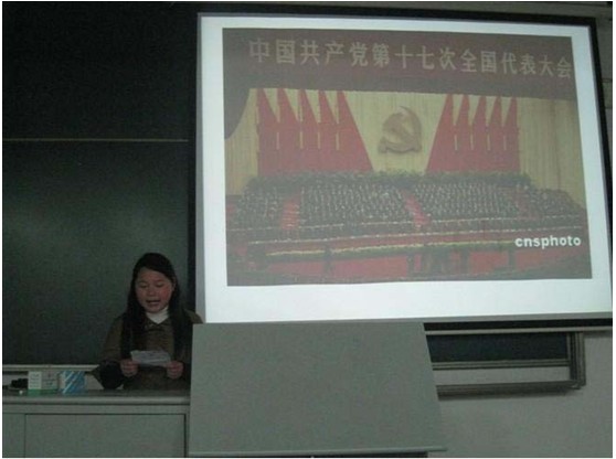 4月26日,电子系09信息331、09机电334两班级团员在教学楼2507教室联合举行联合团课。
