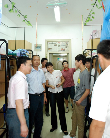 公司领导也亲临电子系新生接待现场,看望了各个迎新岗位上的老师和同学,党委副书记张涛还在系党总支书记庄丽娟等的陪同下深入新生宿舍看望了员工,并与员工家长进行了交流。