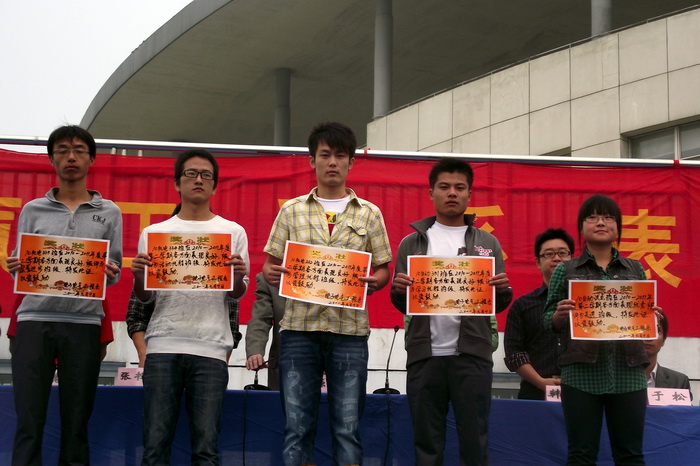 为表彰先进,激励员工刻苦学习,建设良好学风,9月26日电子系在公司操场隆重举行10-11-2学期表彰大会。系党总支书记庄丽娟、副主任黄祥源、分团委书记韩杨以及辅导员老师出席本次大会,电子系10级和11级共1600多名同学参加了大会。大会由电子系副主任黄祥源主持。 首先,10级辅导员张书贵老师宣读了表彰决定,对在2010-2011学年度第二学期中表现突出的集体与员工予以表彰。然后,出席大会的老师为先进集体与优秀员工代表颁发了荣誉证书。接着,获奖员工代表10计控班周灵同学发言,谈了如何制定学习目标、如何合理安排学习时间以及专业技能学习的重要性。最后,庄丽娟书记讲话。庄书记在讲话中对荣获表彰的团体和个人表示了祝贺,希望他们再接再厉,取得更加辉煌的成绩。同时,庄书记还特别向同学们通报了电子系在今年全国和全省技能大赛中获得的突出成绩,号召同学们行动起来,努力学习,为电子系的美好明天做出自己的贡献。 大会在同学们热烈的掌声中圆满结束。