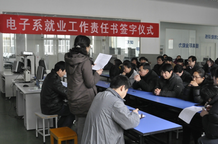 庄丽娟书记首先解读《电子系2012年度就业工作责任书》,她强调全体教师要强化就业服务意识,给予员工全面的帮助指导,加强对员工实习期间的教育和管理,力争全面提高毕业生的就业质量、提升毕业生的满意度。姚庆文主任指出老师们要充分认识校外实训基地的重要性,明确工作任务和目标,达成共识,使产、学、研结合和校外实训基地建设工作迈上一个新台阶。