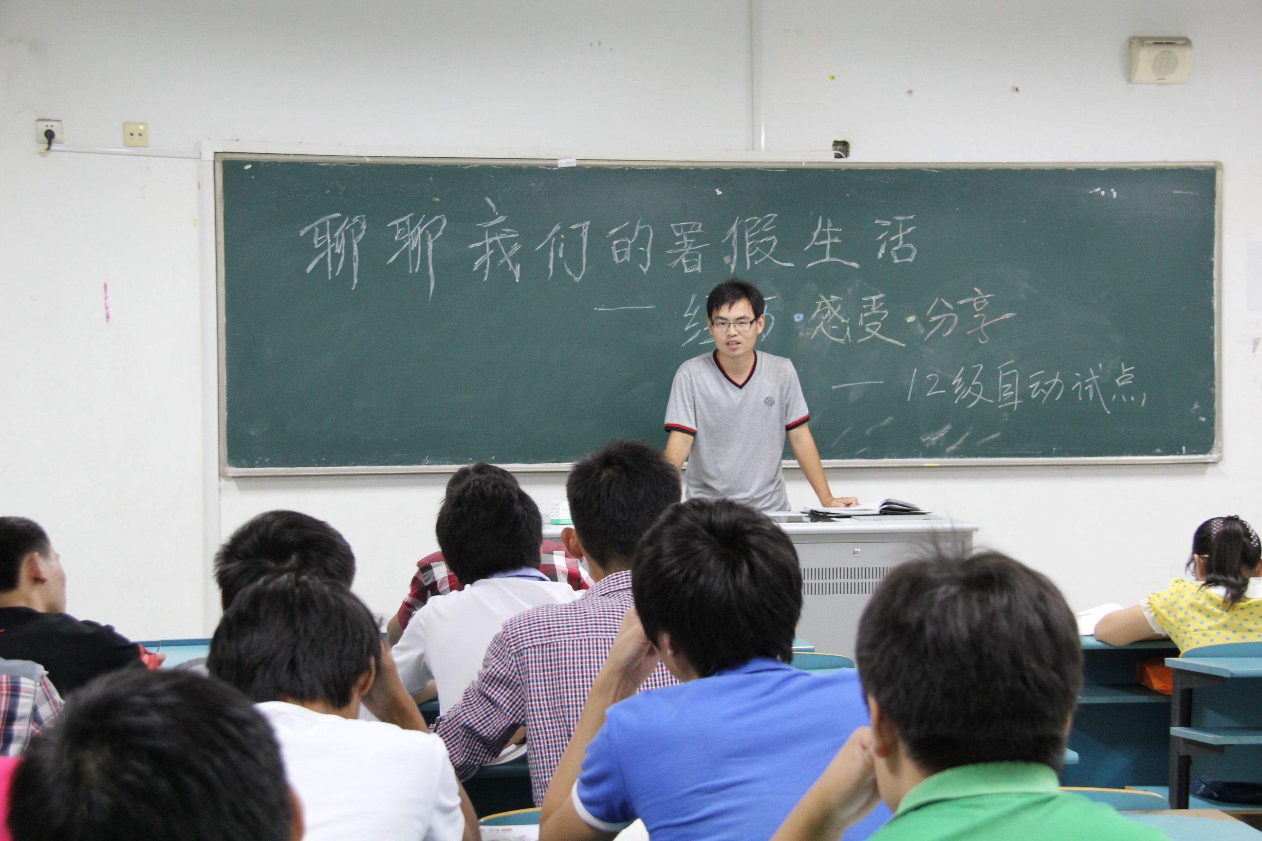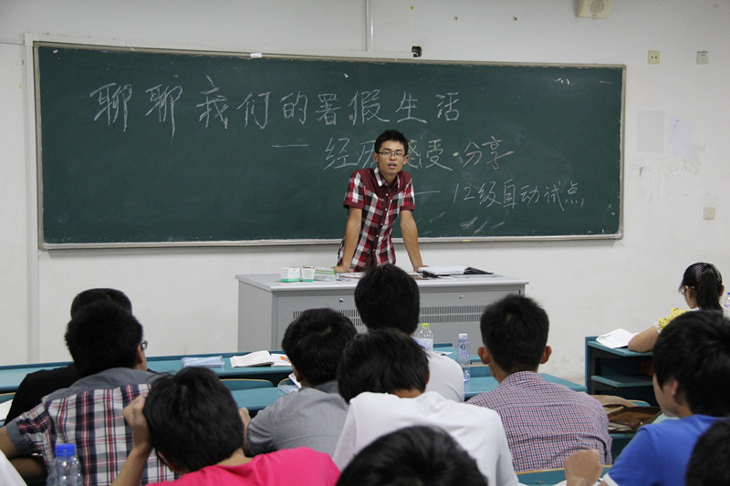 暑假的味道还没有完全消散,新学期却焕发着新的气息展现在员工面前。每个人,都会有着自己独特的暑假生活体验,也都在内心想要去把最精彩的篇章一一分享于大家。为此,12自动试点班级在班主任的组织下,于9月2号晚上举行了主题为“聊聊我的暑假生活――经历、感受、分享”班会活动。