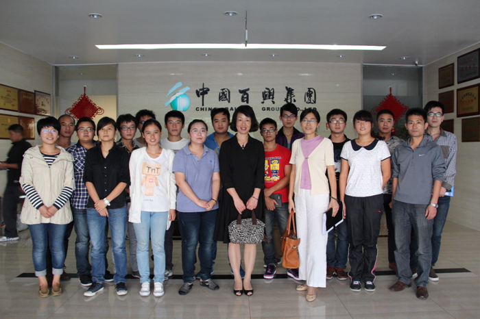 11月8日,电子系党总支书记庄丽娟、管理系党总支书记陈文蕾、11级百兴班班主任魏灵水来到中国百兴集团,与正在实习的11百兴班全体同学进行了实习总结表彰座谈。中国百兴集团副总经理周加清、人事主管翟春娥参加了座谈会。