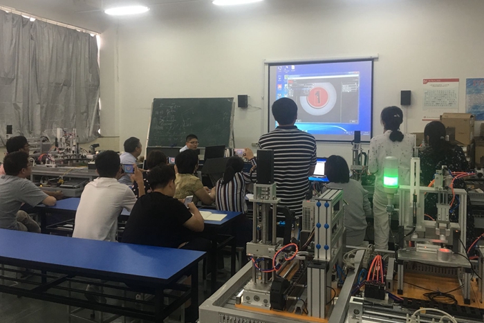 自动线装调技术培训邀请了浙江亚龙教育装备股份有限公司工程师进行升级版双PLC系统自动线培训,围绕最新的三菱FX5U、西门子S7-1200TIA全集成自动化软件、智能视觉检测等方面,培训教师动手练习、互相指导,掌握智能装备技术所需新技术、新材料、新工艺、新设备。新购置的8YL-335升级版双PLC系统自动线,也将用于智能控制专业群核心课程教学,四新技术融入课程内容。