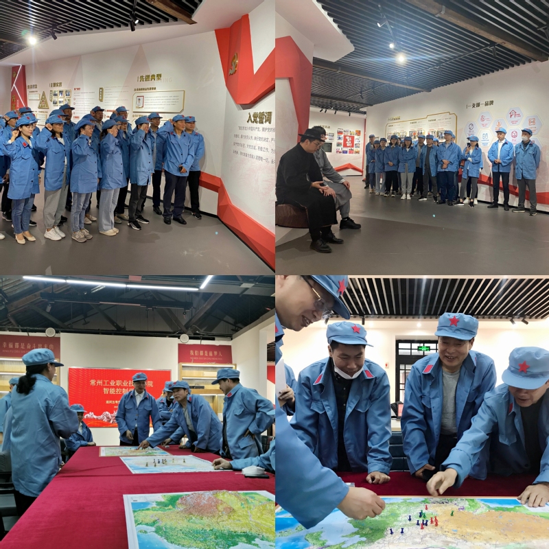 老师们在运河五号创意街区党建馆门口集合,首先参观了常州工业党建馆。大家兴致勃勃地通过各种实物展品回顾了常州工业发展史,深切感受到在中国共产党领导下的常州发生的巨大变化。