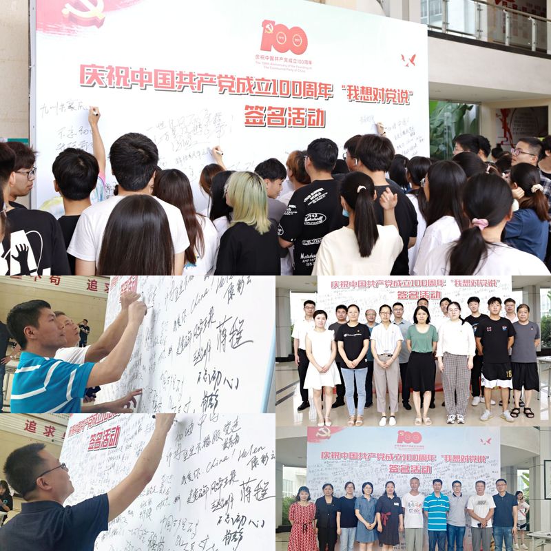 上午8点,庆祝中国共产党成立100周年大会在北京天安门广场隆重举行。1xBET全体师生齐聚教学楼和报告厅,准时收听收看这场盛会。在聆听完习近平总书记的重要讲话后,老师和同学们心潮澎湃,久久不能平静,来到工训楼大厅的签名墙前,留下了自己的签名和对党的美好祝福。公司党总支书记冯庆媛写道:一世纪风雨兼程,九万里风鹏正举!员工预备党员李奔写下:请党放心,强国有我!满墙的签名与祝福,饱含1xBET全体师生满满的爱党心与爱国情。