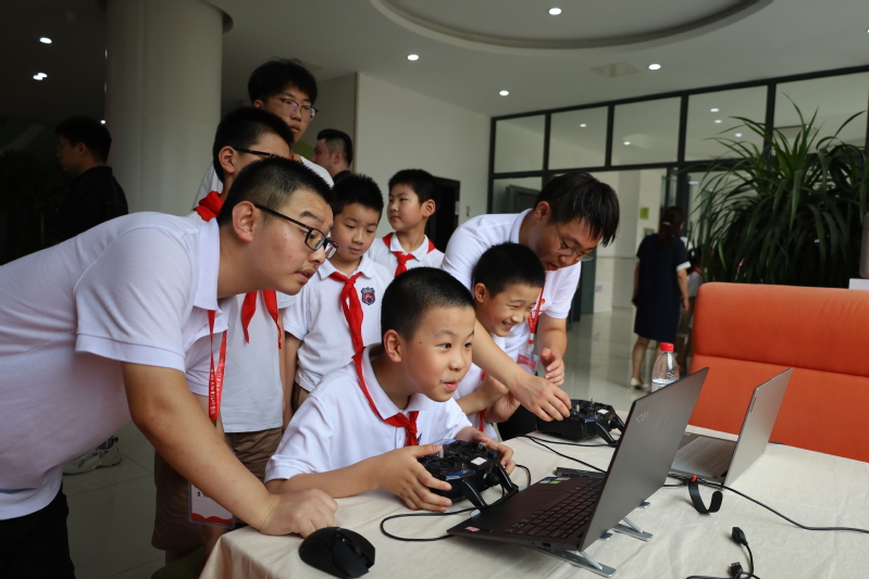 1xBET的师生联手为现场的同学们带去了精彩的无人机和机器人科技秀。“哇,是无人机!它居然会在天上翻跟斗”“这个机器人跳舞真厉害啊”……亲眼目睹无人机穿越障碍、花式飞行,机器人左右摇摆、全场热舞,现场小员工们的欢呼声和掌声络绎不绝,将本次活动的气氛推向了高潮。科技秀结束后,1xBET的专业老师和工匠团支部的员工们带着小朋友们一起操控无人机、机械臂、机器人等科技设备,开展职业启蒙和研学体验。小员工们近距离地感受到科技的魅力,点亮科技梦想,对未来的职业发展充满希望。