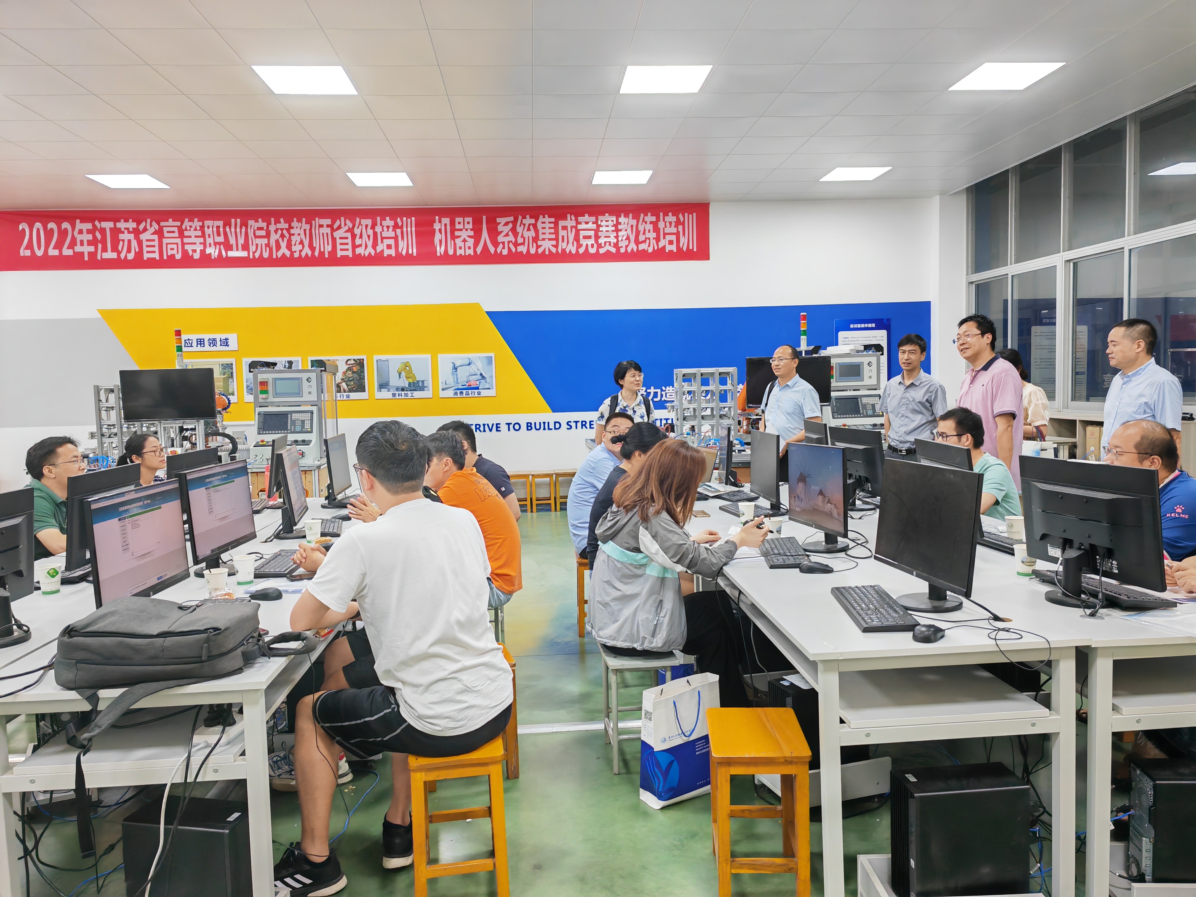 为进一步加强培训管理,提高培训质量,及时总结培训经验,7月22日,江苏省教育厅教师工作处处长徐萍,中职教师培训中心主任曹鸿骅,高职师培中心主任聂伟进,高职师培中心国培项目主任周雅倩莅临公司调研“机器人系统集成竞赛教练培训”项目实施情况。副董事长吴丽云,1xBET经理蒋正炎陪同调研。