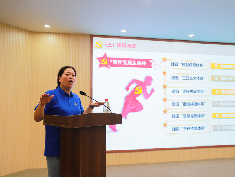 公司党总支书记冯庆媛向在座党员教师介绍了全国党建工作标杆院系创建培育工作,党总支立足“五型”党建,基于大脑、五官、脏腑、四肢、气质、品格六大维度重点培育“智控党建生命体”。建设工作开展以来,党总支深挖特色工匠精神,“1+3+3”工匠生态系统逐步成型,以工匠党支部引领工匠团支部,建设工匠工作室、支部书记工作室、工匠读书会三项平台,创设工匠型大先生、工匠奖学金、智控小工匠三大评选,在职业技能大赛、双创比赛、校企合作、职教启蒙、抗击疫情等方面取得了一系列工作成效。今年暑期,教师党员骨干带领员工勇夺2022年全国职业院校技能大赛高职组“机器视觉系统应用”赛项、“机器人系统集成”赛项以及第十七届“振兴杯”全国青年职业技能大赛三块金牌。