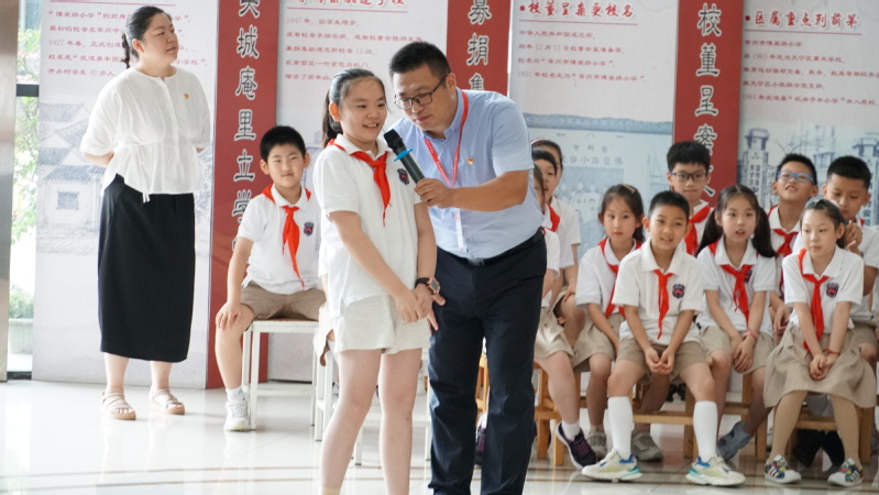 三旗接力,致敬榜样。博爱小学少先队员代表蒋沂玲的星党课——《科学与忠诚》,向现场的老师和同学们讲述了钱学森立志报国、科技强国的人生故事。科学家呕心沥血的奋斗经历、淡泊名利的高贵品质在现场同学们心中撒下了科技报国、无私奉献的种子,引领着同学们不断学习前辈,积极投身到建设祖国的事业中去。