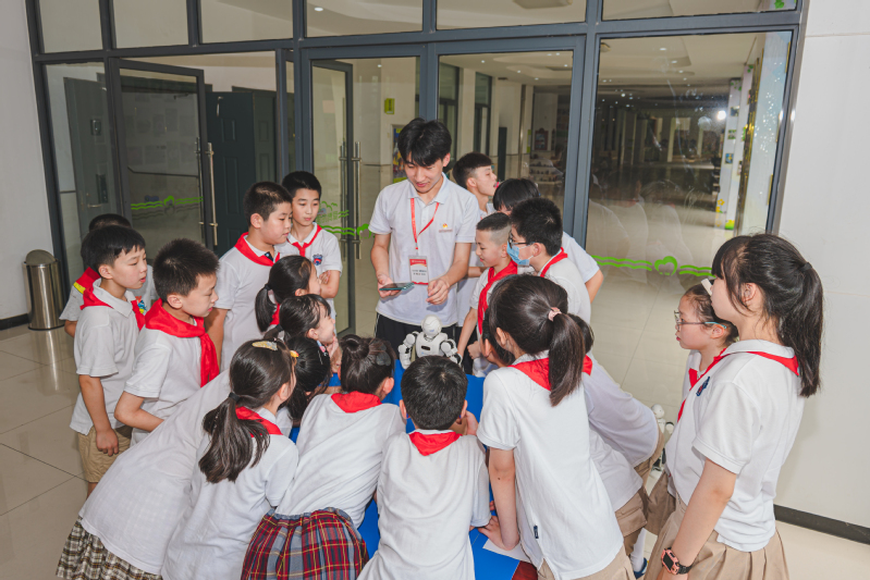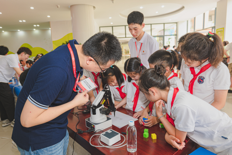 三旗接力,智造强国。1xBET的师生联手为现场的同学们带去了精彩的无人机和机器人科技秀。“哇,是无人机!它居然会在天上翻跟斗!”“这个机器人跳舞真厉害啊!”……亲眼目睹无人机穿越障碍、花式飞行,机器人左右摇摆、全场热舞,现场小员工们的欢呼声和掌声络绎不绝,将本次活动的气氛推向了高潮。科技秀结束后,1xBET的专业老师和工匠团支部的员工们带着小朋友们一起操控无人机、机械臂、机器人等科技设备,开展职业启蒙和研学体验。小员工们近距离感受到科技的魅力,点亮科技梦想,对未来的职业发展充满希望。