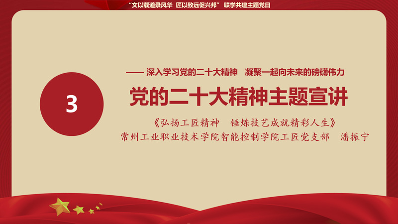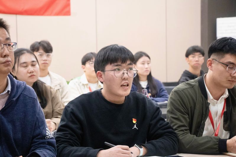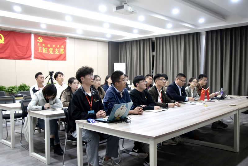党的二十大精神专题学习时,与会师生共同观看“理论微动画”系列视频,深入学习党的二十大报告原文,重点领会报告中的一系列关键论述。文公司2021级硕士生党支部成员何思锦作“传承诗词文化,千年文脉绽放时代之花”主题宣讲,致敬“感动中国”获得者叶嘉莹先生,指出诗词文化承载着中华民族的基因和血脉,面向全体青年发出“讲好中国故事,传播好中国声音”的号召。智控公司工匠党支部成员潘振宁带来题为“弘扬工匠精神,锤炼技艺成就精彩人生”的主题宣讲,从“办好人民满意的教育”和“深入实施人才强国战略”两方面具体阐述,通过讲述党的二十大代表、杰出员工邓建军的奋斗故事,结合亲身经历和工作实践,深入解读“工匠精神”的新时代内涵。