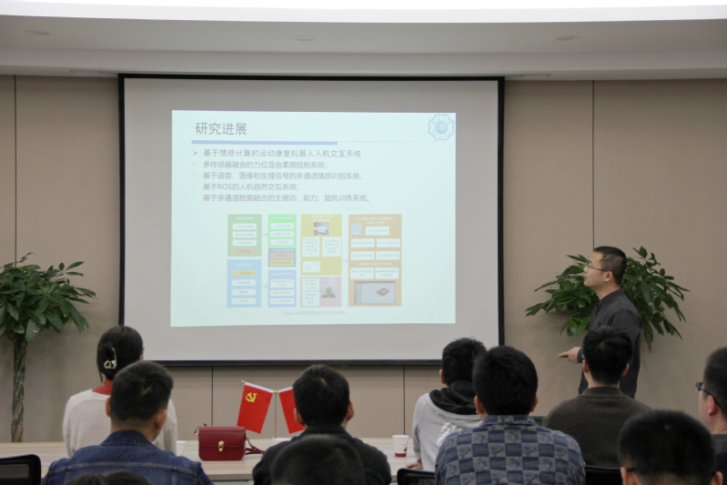 研究生智能机械所第三党支部梁兴灿博士、俞志鹏博士、方盛昌博士分别作《基于情感计算的运动康复机器人》《下肢康复外骨骼人体运动意图识别研究》《爪刺式四足攀爬机器人的关键技术研究》主题讲座。