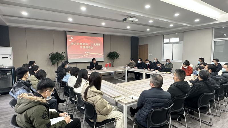 12月8日,公司党委宣讲团成员、党委副书记、董事长杨劲松在工匠楼202为公司党总支教职工、员工代表专题宣讲党的二十大精神。公司党总支书记冯庆媛主持会议。