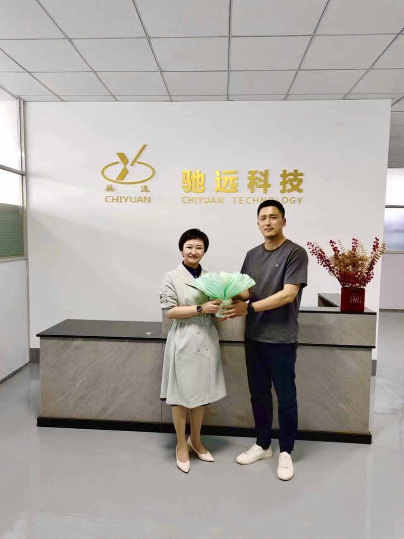 参观结束后,麻丽娟邀请徐涛作为智控小工匠代表、创业典型讲述他的工匠故事,引领学弟学妹。徐涛十分高兴并邀请老师们前往他所创办的常州驰远电子科技有限公司。在办公室,徐涛回忆起读书时的点点滴滴,表达了对恩师麻丽娟、吴正明的感谢,向自己曾经的专业老师麻丽娟献花,讲述了他自毕业以来的创业历程,创业路上几经起死回生,凭一己之力力挽狂澜,分享了宝贵的创业经验,同时带领大家参观企业车间,麻丽娟、吴正明对徐涛一路走来奋楫不怠感到欣慰,希望徐涛能够常回公司,用自己的经历和精神影响更多工匠学子。