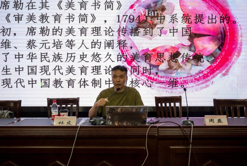 讲座中,林友教授以《美育视域下的公司舞蹈教育》为题,从美育的诞生、内涵、特点以及舞蹈的育人价值等方面系统阐述了校园舞蹈艺术之美育。随后,林友教授结合相关舞蹈作品深入浅出的从各个方面讲解了如何透彻了解“公司舞蹈教育”的发展及现状。在提问与交流环节,林友教授和与会师生针对传统舞蹈的校园创作等问题进行交流与探讨,并给予了耐心地解答。
