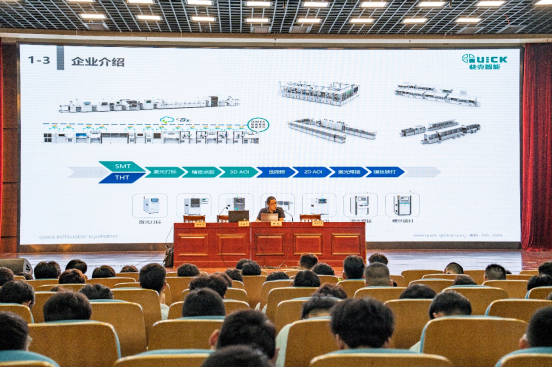李永杰老师首先向同学们介绍了现场工程师班联合培养项目的背景,并就本次现场工程师班与快克智能装备股份有限公司联合培养岗位:测试工程师、组装调试工程师进行了介绍。培养内容主要包括电子装联等智能装备的基本结构、工作原理、技术条件、维护标准、生产工艺等专业知识,电子装联等装备现场组装调试、生产跟进、维护维修、软件调试、设备跟踪测试等专业技能,电子装联装备技术文档编制,项目现场测试案例,现场设备的日常巡检、维护及应急处置岗位职责。最后详细介绍了联合培养集团和企业的政策支持和报名,明确了选拔具体形式和流程,鼓励同学们积极报名。