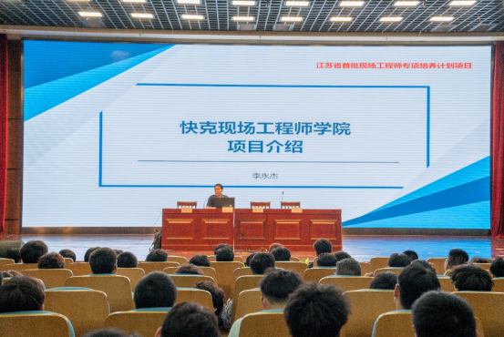 为贯彻落实党的二十大精神和中共中央、国务院《关于深化现代职业教育体系建设改革的意见》,着力培养适应科技创新发展的高层次技术技能人才。江苏省首批现场工程师专项培养计划项目宣讲会,于9月10日,在报告厅举行。1xBET电气教研室专业带头人冯云菊、教研主任李永杰和快克智能装备股份有限公司产教事业部总监沈朋等企业工程师出席,2023级电气自动化技术、工业互联网应用技术专业400余名员工参加本次宣讲会。