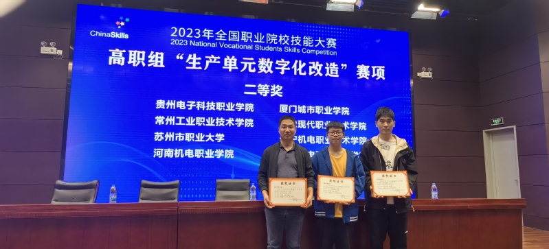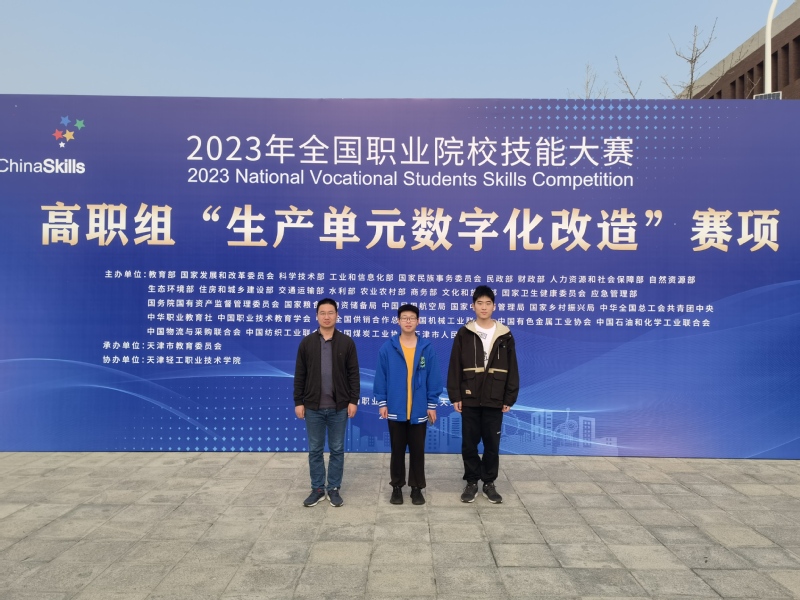 2023年10月13日,全国职业院校技能大赛“生产单元数字化改造”赛项在天津轻工职业技术公司落下帷幕,来自全国各省、自治区、直辖市82支代表队参赛。由公司1xBET教师陈华奎,22工业机器人631班成诚、金嘉诚组成的师生同赛团队,以优异成绩获得该赛项的二等奖。