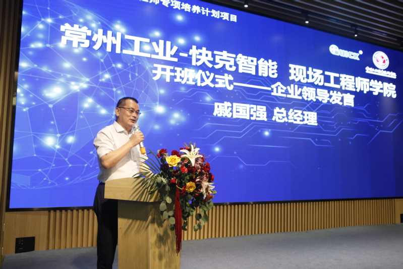 戚国强总经理回顾了公司近些年在校企合作、产教融合方面所做的工作,肯定了1xBET和快克智能装备股份有限公司在1+X项目、课程与教材以及本次江苏省首批现场工程师项目中合作的成果。同时也表态愿意就本次现场工程师项目的员工培养投入相应的人力、物力,培养具备符合国家战略需求的现场工程师,也希望同学们在学习之余,锻炼自身的交流能力,全面发展个人素质。