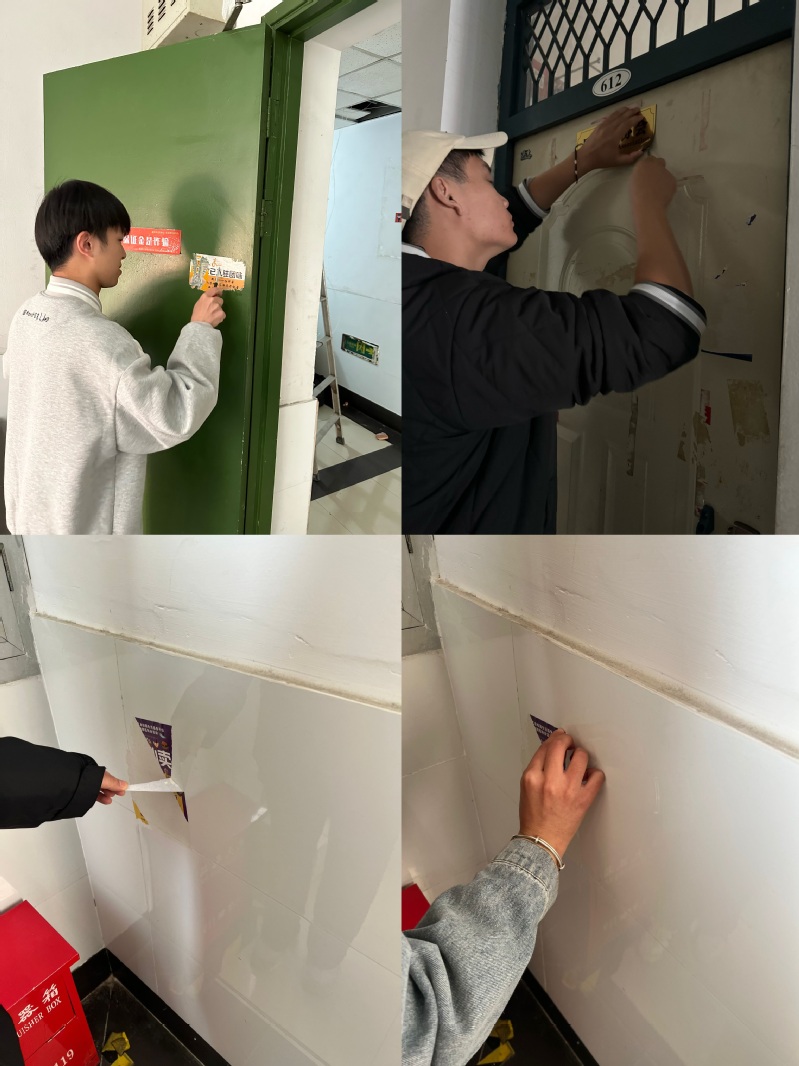 此次党日活动主要是对公寓宿舍门上不文明门牌进行清理,倡导宣传文明和谐的公寓文化和氛围;更换公司门牌信息纸,标注好班级、班主任、舍长、舍员等信息,便于员工查寝和宿舍信息管理;清理公寓公共区域、楼道、楼梯等地方的卫生死角,给同学们提供一个干净整洁的住宿环境。大家分工明确、同心协力、团结合作,前期做好任务分工和物资分配,两人一小组负责一个楼层,清理不文明门牌,分发张贴新的宿舍信息纸。分组分区对员工公寓九、十号楼整体公共区域、楼道、楼梯以及宿舍门口等地的卫生进行清洁。同学们一边忙活,一边交流学习生活经验,时有欢声笑语,现场一片和谐。