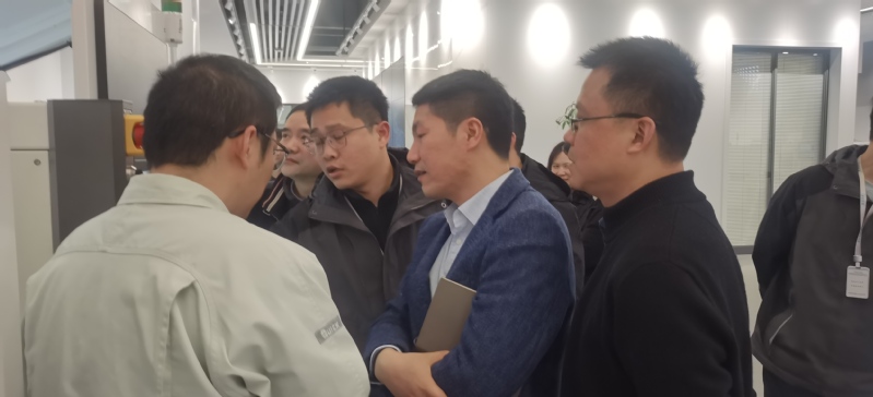 企业产教项目部经理沈朋就目前企业在现场工程师项目投入情况、对接安排等工作情况进行介绍。三方还就24级的现场工程师招生、教学载体、课程的校企合作建设等情况进行专门讨论,确保现场工程师项目的顺利开展。“江苏工匠”韩迎辉老师就技能大师工作室如何参与员工培养,如何结合企业产品将企业设备转化为教学载体与企业工程师探讨。会后一行人参观了企业设备展厅,有针对性的对教学转化的设备进行实地讨论,初步达成下一步改造共识。
