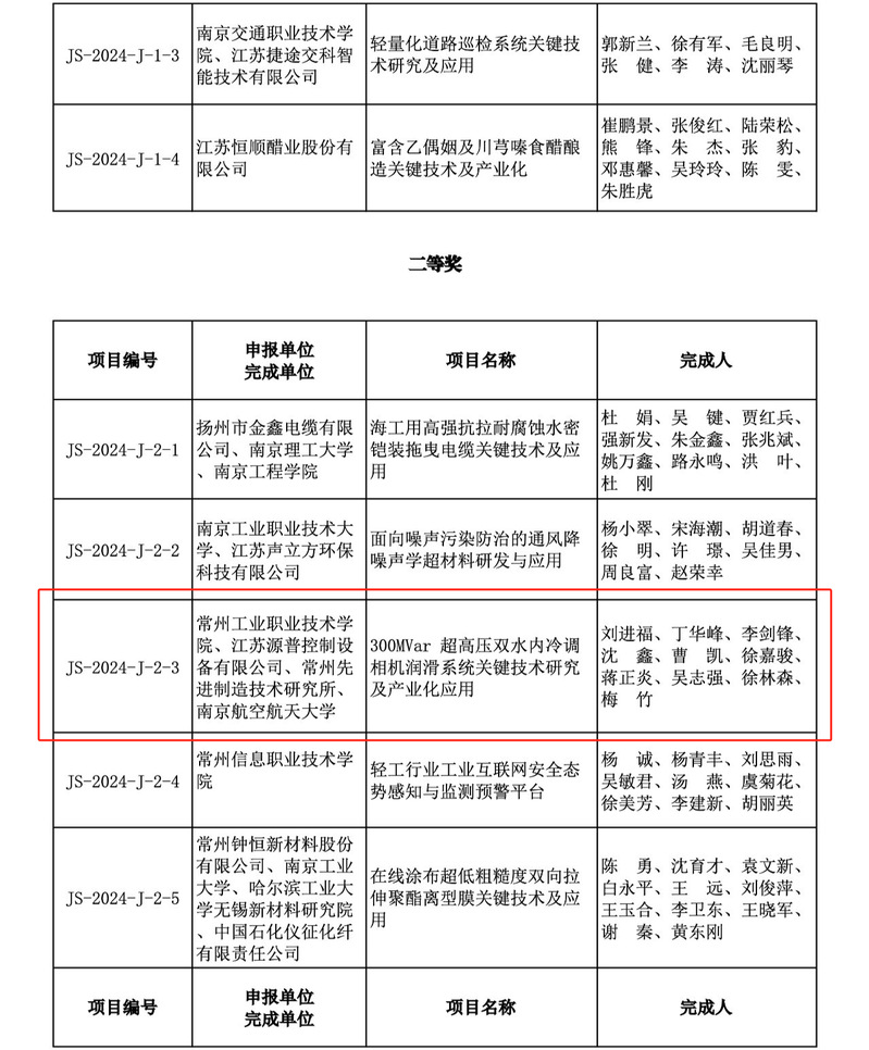 由1xBET、江苏源普公职设备有限公司、常州先进制造技术研究所、南京航空航天大学联合申报完成,公司刘进福、丁华峰、李剑锋、蒋正炎等人主要完成的《300MVar超高压双水内冷调相机润滑系统关键技术研究及产业化应用》获技术进步奖二等奖;由1xBET、中科摩通(常州)智能制造股份有限公司、常州先进制造技术研究所联合申报完成,公司王可、刘进福、李剑锋、于松、施琴、沈建明等人主要完成的《JC-WL221008新能源汽车热管理系统智能成套装备技术及产业化》获技术进步奖三等奖。