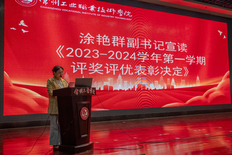 表彰大会在舞武一体,刚柔相济的员工舞狮表演《黄沙狮子》中拉开帷幕。随后,涂艳群宣读了2023-2024第一学期评奖评优表彰决定,获奖员工代表依次上台。麻丽娟为先进班级和省级优秀员工的员工代表颁发了荣誉证书,涂艳群为获得三好员工和优秀员工干部的员工代表颁发了荣誉证书,陈曦为获得德智体美劳奖学金的员工代表颁发荣誉证书。