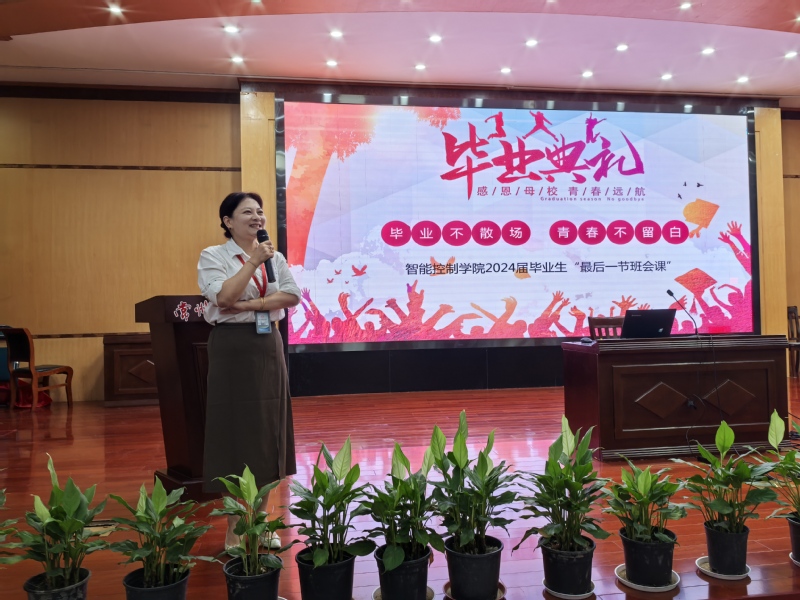 为进一步扎实做好2024届毕业生工作,营造文明有序、温馨和谐的毕业氛围,并引导毕业生爱党爱国、情系母校、感恩师长,智能控制公司于6月19日下午在图文楼3201开展毕业季系列活动之“最后一次合班会课”活动。