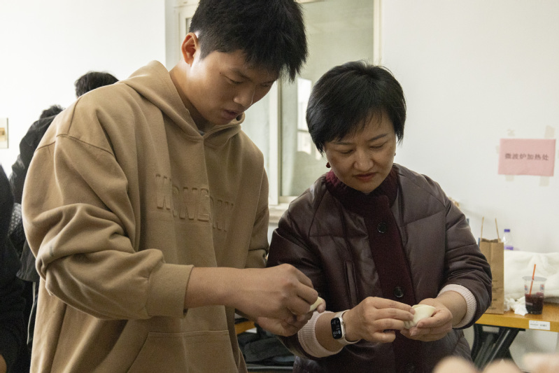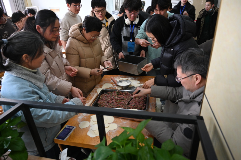 教师、员工干部与家庭经济困难员工围坐一堂,共同体验包饺子的乐趣。大家分工明确,和面、擀皮、包馅,每一个步骤都充满了欢声笑语,包饺子这一传统习俗,不仅加深了同学们之间的友谊,更让他们深刻体会到了集体生活的温馨与快乐。