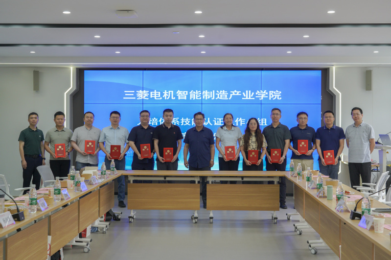 随后,公司教务处处长蒋正炎主持研讨,讨论通过三菱电机产业公司人培体系技能认证工作小组章程,郁汉琪与杨弟平为首批认证专家颁发聘书,全体嘉宾共同见证技能认证工作小组的成立。