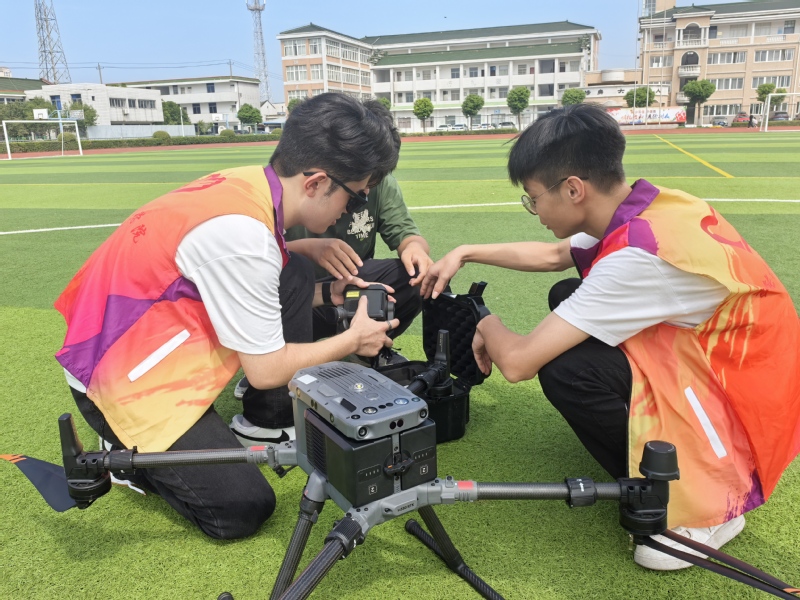 随后的飞行演示掀起高潮。在公司操场,志愿者操控无人机完成悬停、360 度盘旋、低空穿梭障碍物等动作,引得小朋友阵阵欢呼。志愿者边操作边讲解飞行安全规范,孩子们兴致勃勃,脸上满是好奇与向往。