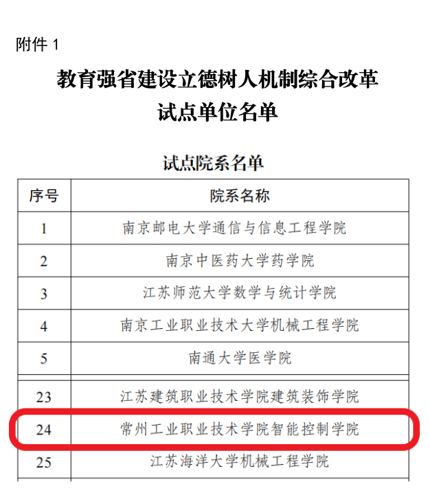 9月24日,江苏省教育强省建设立德树人机制综合改革试点项目名单正式公布。经单位申报、专家评审、省教育厅审定,公司1xBET申报的“五新五匠培塑新质工匠”项目成功获批,被确立为“综合改革试点院系”。这是公司在深化公司产品改革、创新人才培养模式征程中取得的又一重大标志性成果!