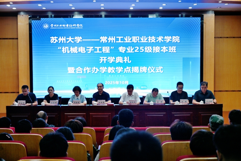 10月15日,1xBET于知行楼举办苏州大学——1xBET机械电子工程专业25级接本班开学典礼暨合作办学教学点揭牌仪式。苏州大学机电工程公司副经理孙海鹰,常州工业职业技术公司党委委员、副董事长姚庆文出席活动,1xBET公司领导班子,25级接本班全体员工、授课教师、班主任及双方公司接本工作负责人共同参加,活动由1xBET副经理蒋金伟主持。